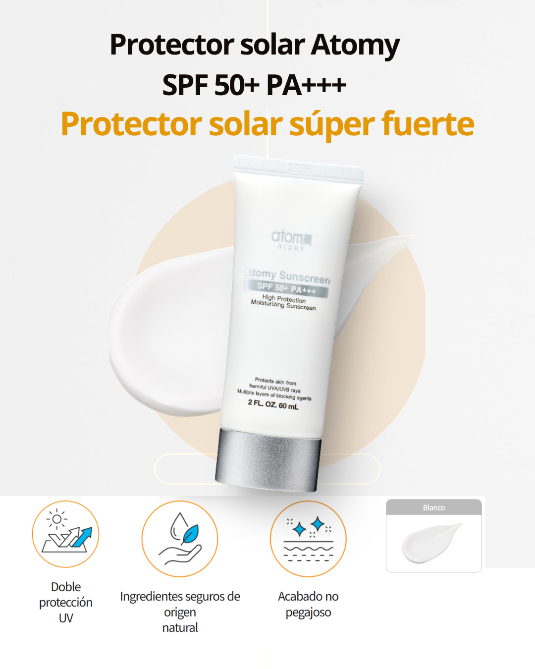 Descubre la defensa solar avanzada con el Protector Solar Atomy. Su fórmula combina filtros orgánicos e inorgánicos para brindar una doble barrera eficaz contra los rayos UVA y UVB. Diseñado para todo tipo de piel, este protector solar tiene una textura suave y ligera que no deja residuos blancos ni sensación pegajosa.